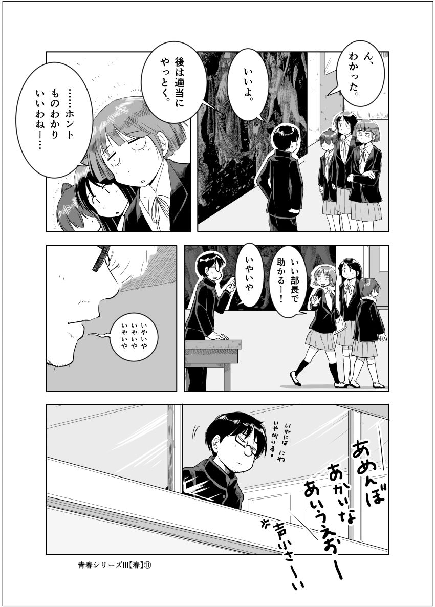 春 – Primavera 2016 11/27 高校編 2016.11.27 21:09 コンテンツ第一話 第二話 第三話 第四話 読みました。 送信 【翻訳用】AIによるこのマンガ・イラストの説明美術部の部員たちは、ボッティチェリの「春」の絵を一年以上模写しているが、伝統ゆえに完成しない。演劇部のメンバーで演劇祭の準備が進む中、美術部長のナガタニ君は、孤立を好む性格で独自のペースで活動する。彼は少しずつ美術部の仲間に支えられながらも、自分のペースで進んでいく。最終的にはピアノを弾きながら、自分らしい居場所を見つけていく様子が描かれている。 高校編 URLをコピーしました!
