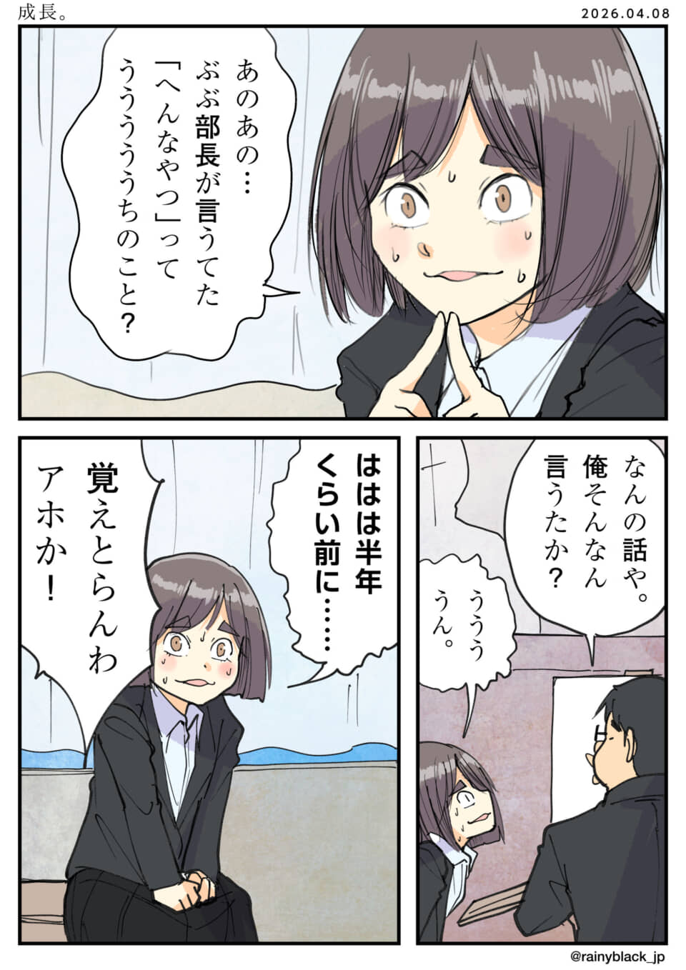 読みました。 送信 【翻訳用】AIによるこのマンガ・イラストの説明ムロイは、かつてハセガワから言われた「へんなやつ」という言葉の意味を、半年経った今になって問い詰める。吃音を気にし、周囲からの気遣いに疲弊していたムロイに対し、ハセガワは悪気なく適当に返すが、ムロイは執拗に言葉を求める。そんなムロイに対し、ハセガワは「他人を理解することなどできない」と突き放しつつも、成長し別人のようにたくましくなった姿を見て、どこか寂しげな感情を抱くのだった。 高校編 ムロイ 3ページ ほっこり 思春期 URLをコピーしました!