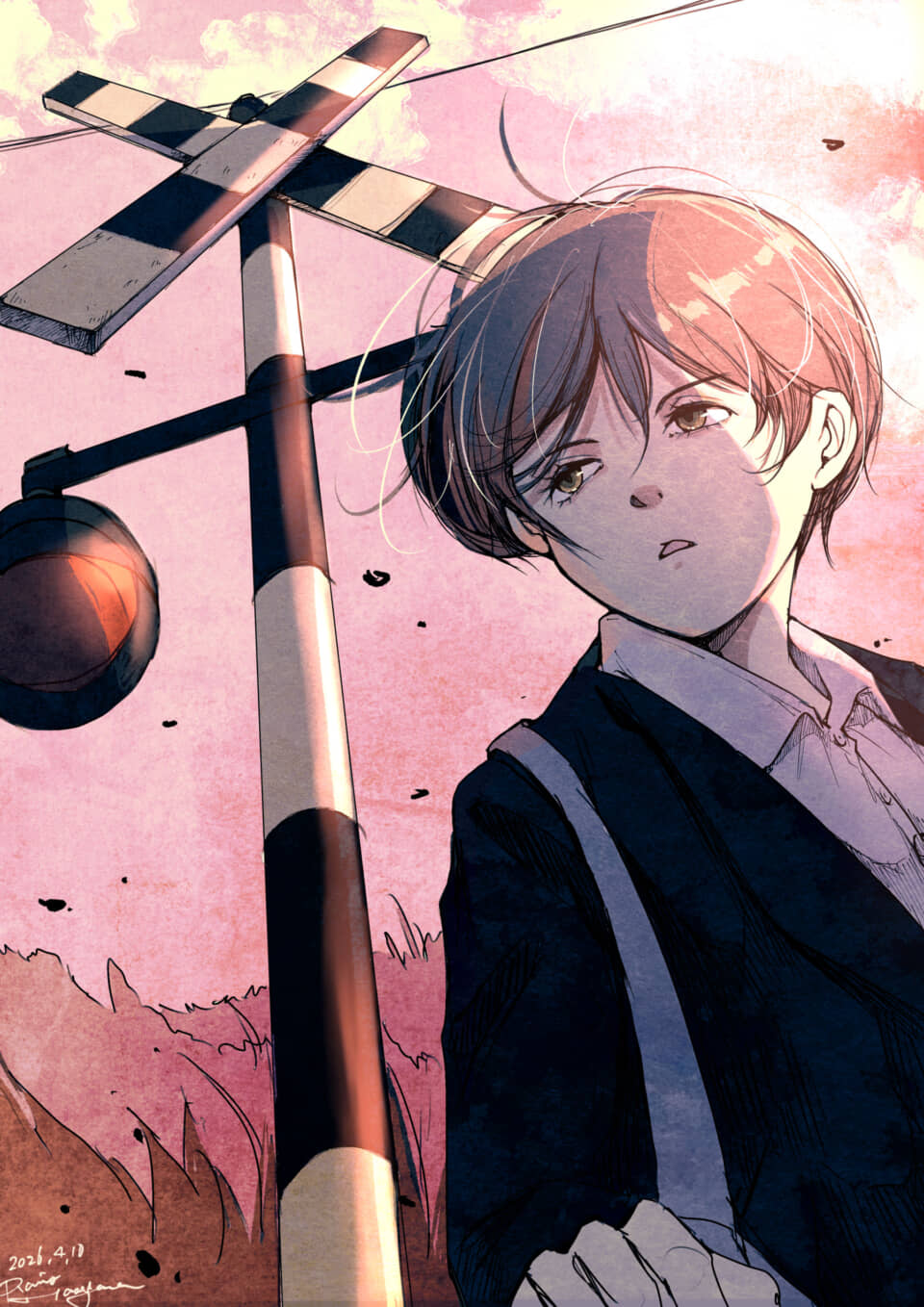 金曜夜のドローイング。 読みました。 送信 【翻訳用】AIによるこのマンガ・イラストの説明夕暮れ時、踏切の警報機が赤く光る脇にマキタが立っている。制服姿でこちらを見つめるその表情はどこか物憂げであり、思春期特有の切なさと孤独感が漂う。周囲には風が吹き抜け、彼女の揺れる髪や背景の淡い色合いが、過ぎ去った青春のひとときや、言葉にできない感情の重なりを象徴しているかのようだ。 高校編 マキタ 1ページ 絵 切ない 思春期 URLをコピーしました!