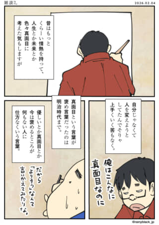 「どうでもいい話。」 2022 12/24 高校編 ムロイ 2ページ 2022.12.24 22:49 読みました。 送信 【翻訳用】AIによるこのマンガ・イラストの説明クリスマスの日、主人公は暇でジャスコのゲームセンターに行く。そこで、知り合いのムロイがフードコートでアイスクリームを売っている姿を目撃する。ムロイに見られてしまい、恥ずかしい気持ちになる主人公。結局、帰ろうとすると自転車が盗まれてしまう。何とも言えない、ちょっと切ないクリスマスの出来事だ。 高校編 ムロイ 2ページ URLをコピーしました!